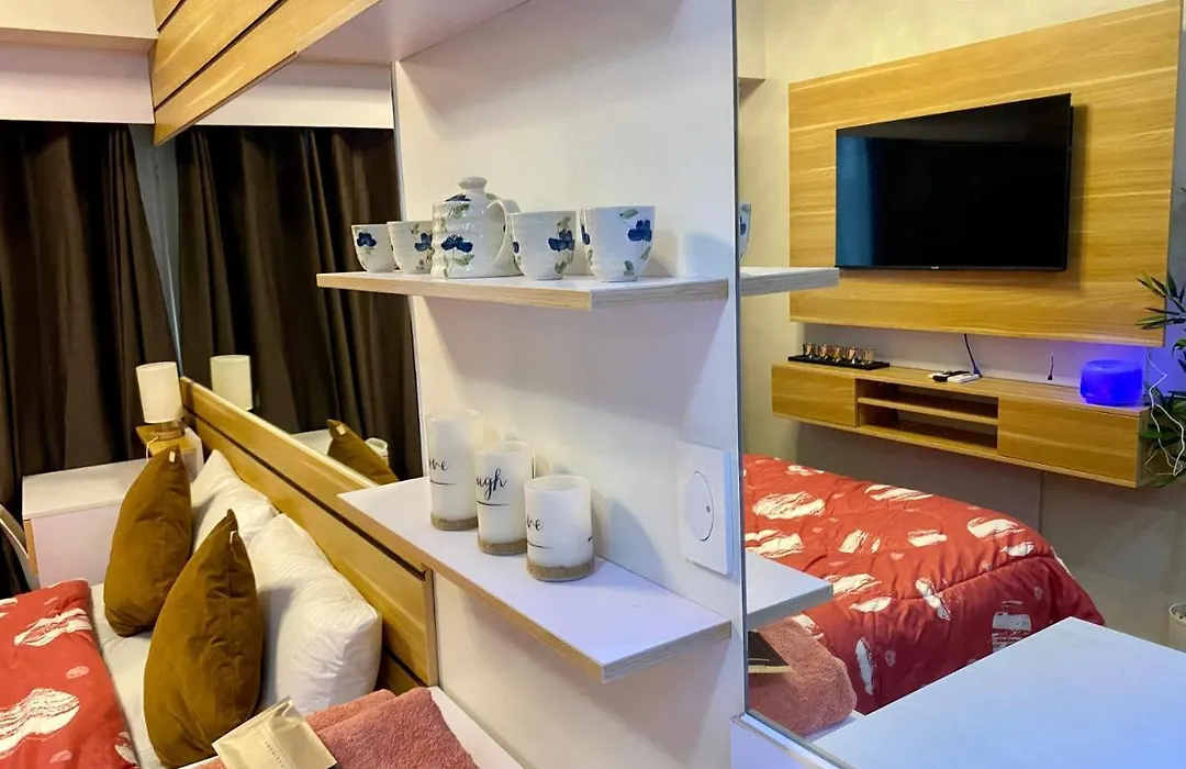 ベッドルーム1室のマニラ市Woodland Elegance Retreat Symphony Of Artistry With Blazing Fast 300 Mbpsアパートメントはナショナル・シュライン・オブ・ザ・サクレッド・ハート・オブ・ジーサスから歩いてわずか8分の海辺のロケーションにあります。 屋上のプールとフィットネスセンターを提供するアパートはInternational Baptist Church of Manilaとても近くに位置しています。